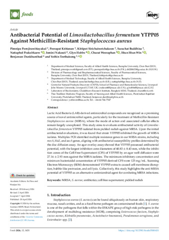 Antibacterial Potential of Limosilactobacillus fermentum YTPP05 Against Methicillin-Resistant Staphylococcus aureus.