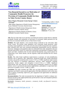 Non-financial Incentives on Motivation of Community Health Promoters for Provision of Community Health Services in Taita Taveta County, Kenya.