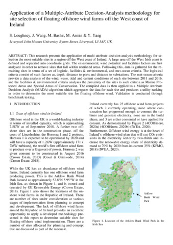 Application of a multiple-attribute decision-analysis methodology for site selection of floating offshore wind farms off the West coast of Ireland.
